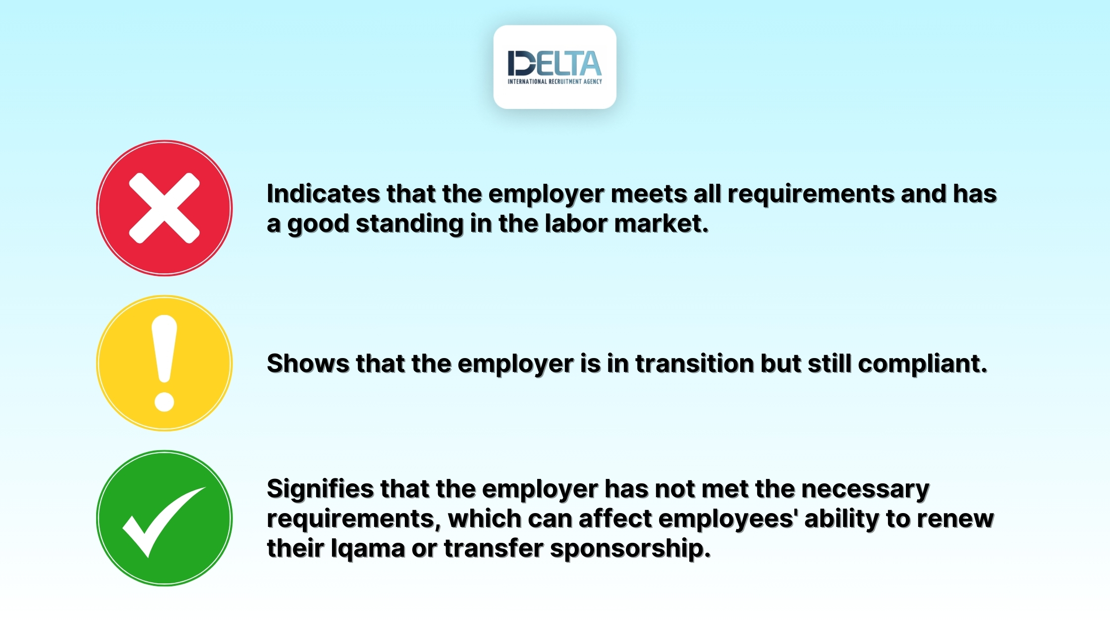 - Red Status: Signifies that the employer has not met the necessary requirements, which can affect employees' ability to renew their Iqama or transfer sponsorship.