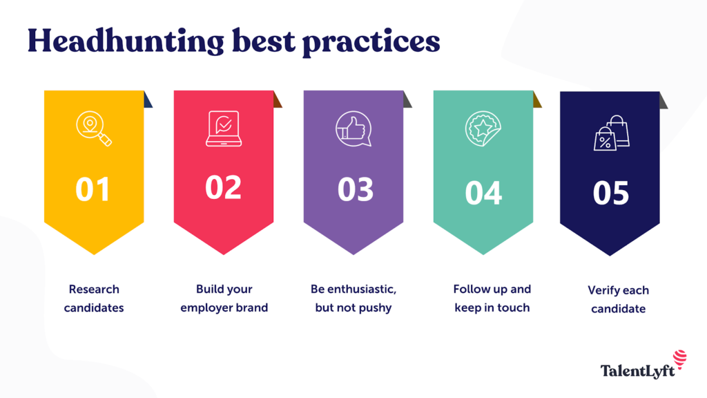 Headhunters use different methods, like professional connections and studying competitors, to find potential candidates who aren’t actively looking for a job. They approach these people to see if they’re interested.